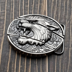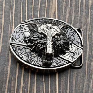 Belt buckle with knife and wolf’s head design, embossed brown, belt buckle with knife,Belt Knife